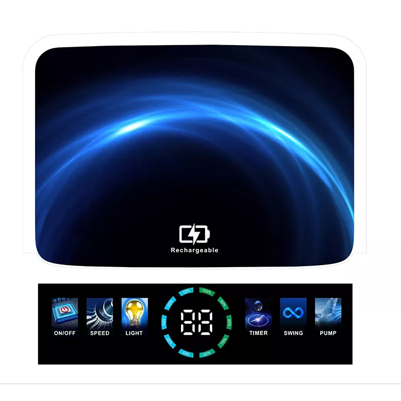 နေရောင်ခြည်စွမ်းအင်ဖြင့် ပံ့ပိုးထားသော၊ ပြန်လည်အားပြန်သွင်းနိုင်သော အငွေ့ပျံသောလေအေးပေးစက် ပန်ကာသည် ၎င်း၏ပါရှိပါရှိသည့် ဘက်ထရီအား ပြန်လည်အားပြန်သွင်းရန်အတွက် နေ့ဘက်တွင် နေရောင်ခြည်ကို စုပ်ယူနိုင်ပြီး သဘာဝပတ်ဝန်းကျင်နှင့် လိုက်လျောညီထွေဖြစ်ပြီး ကုန်ကျစရိတ်လည်း သက်သာစေပါသည်။ ကြာရှည်ခံဘက်ထရီဖြင့်၊ 4-14 နာရီဆက်တိုက်အအေးပေးသည် (ပန်ကာအမြန်နှုန်းပေါ် မူတည်၍) ဖြစ်သောကြောင့် "ပါဝါစိုးရိမ်ပူပန်မှု" မရှိဘဲတစ်နေ့တာလုံးအပူကိုကျော်ဖြတ်နိုင်သည်။